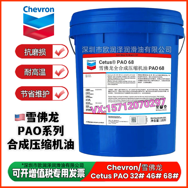 雪仏龍全合成圧縮機油PAO Chevron Cetus PAO 32 46 68 # 空圧オイル