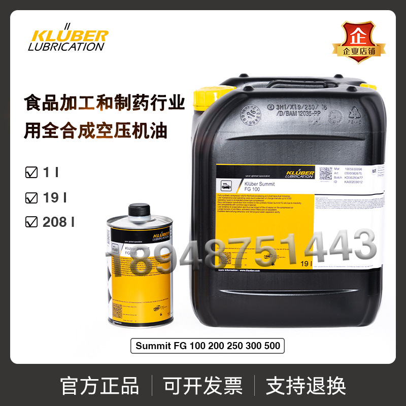 Kluber Summit FG 100 200 250 500食品加工合成圧縮機油用