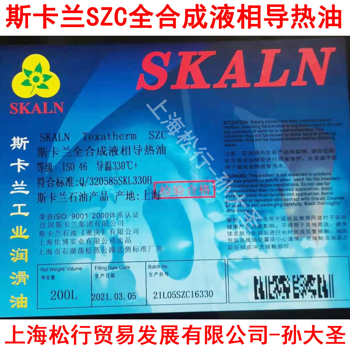 SKALNスカラン低温熱伝導油B50反応釜サンドイッチボイラー熱伝導油合成熱伝導油-70度