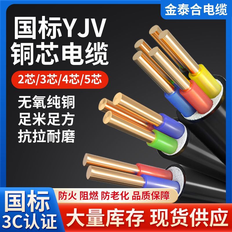 国家標準純銅 YJV ハードコアケーブル 2/3/4/5 芯 1.5/2.5/4/6 平方充電パイル三相電線