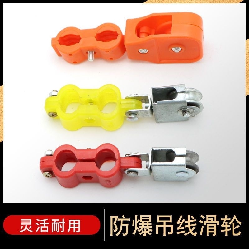 運転用半プラスチック吊り下げワイヤープーリー、二穴二ネジ鉄ホイール、ケーブル牽引ワイヤー、マイクロワイヤーロープ防爆プーリー