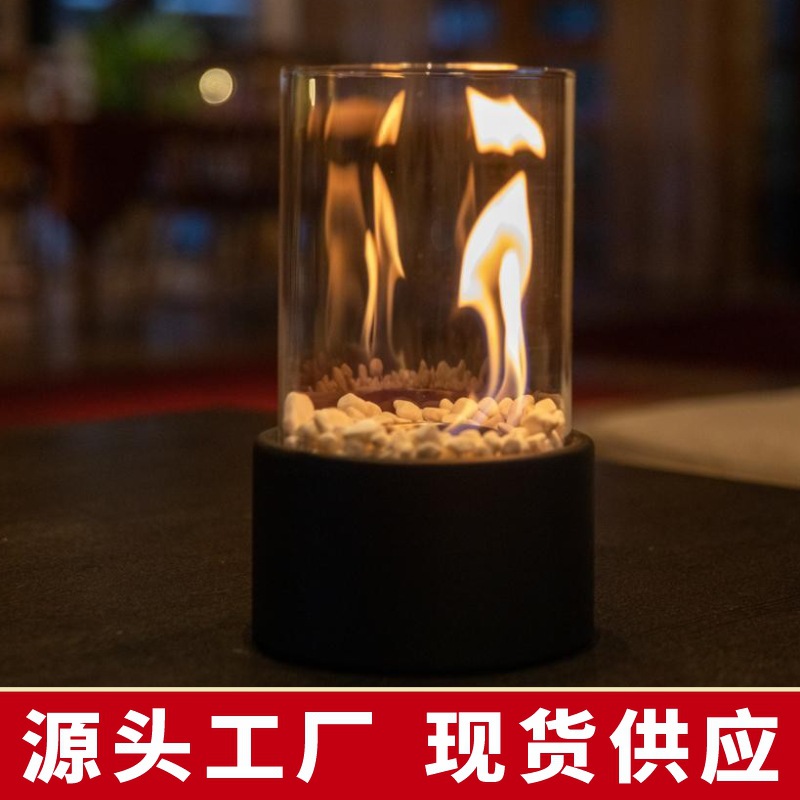 クリエイティブアルコール暖炉真火ガラス金属白黒石小型円形デスクトップ屋外雰囲気装飾暖房