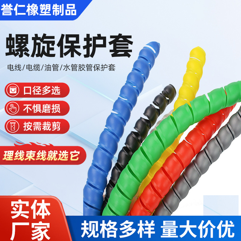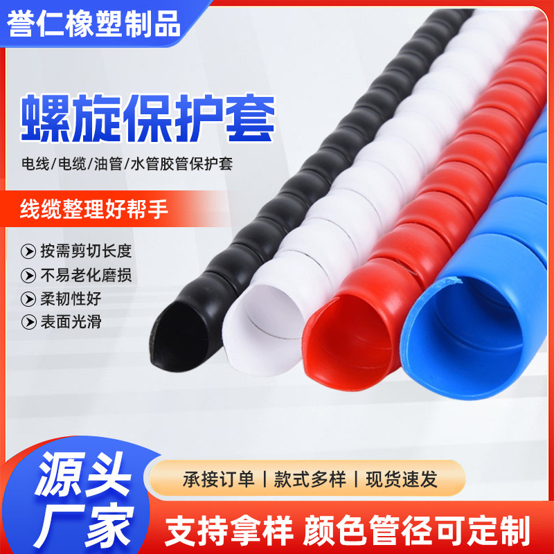 卸売スパイラル保護カバー電線ケーブル水道管オイルパイプ保護カバー肥厚耐摩耗性ゴムパイプスパイラル保護カバー