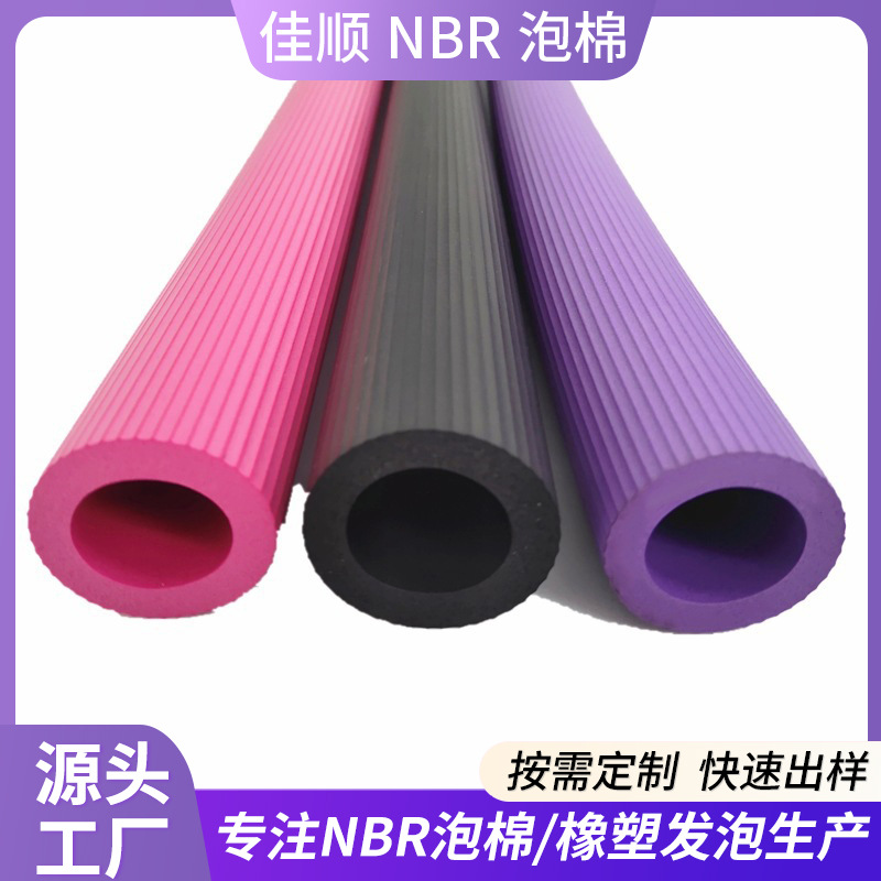 Jicheng NBR 発泡スポンジチューブ耐摩耗性滑らかな粗い表面フィットネス機器滑り止めストライプ nbr ゴムチューブ