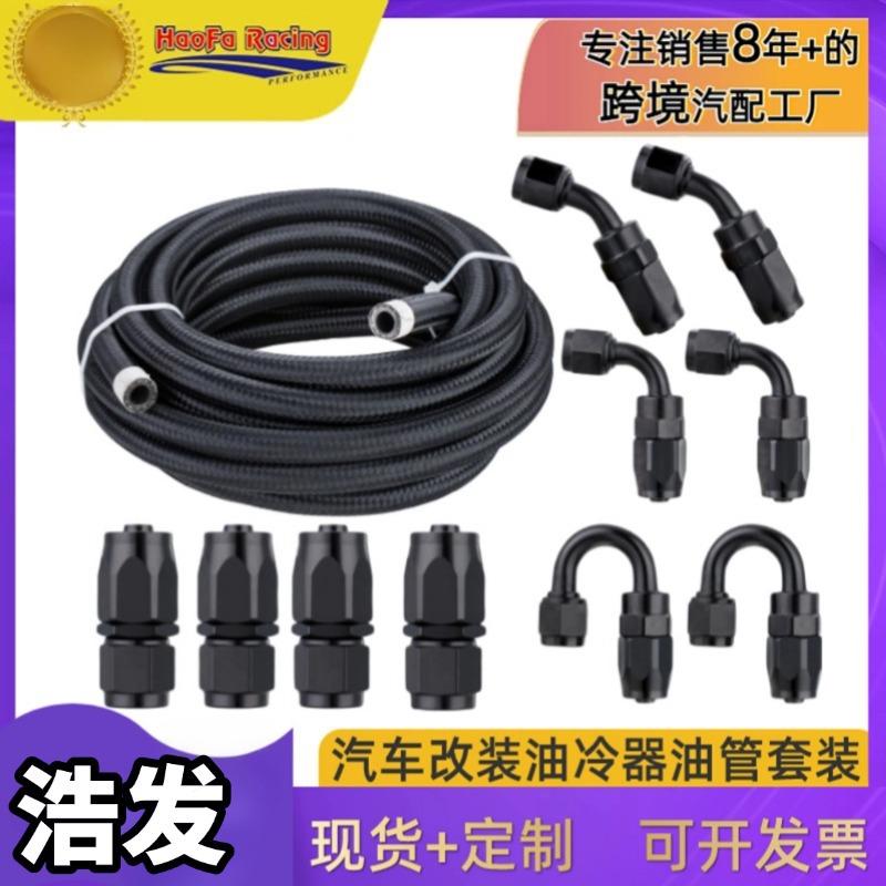 浩发越境自動車改造用オイルクーラーチューブ ナイロン/スチールワイヤー編組ゴムホース 10個のコネクター付き燃料チューブセット