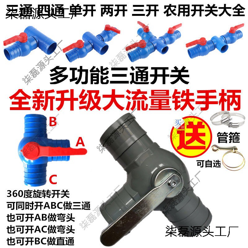 2インチ2.5インチ3インチ農業用ドリップ灌漑多機能三方継手四通スイッチボール弁微噴水ホース部品