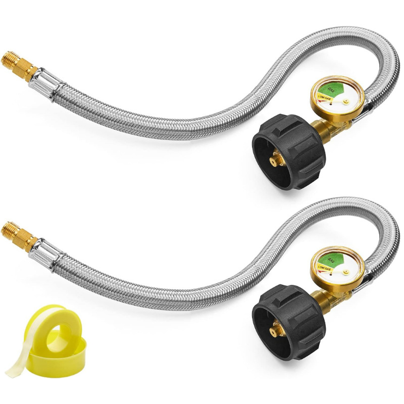 15インチキャンピングカープロパンホースプロパンタンク接続ホースステンレス2点セット