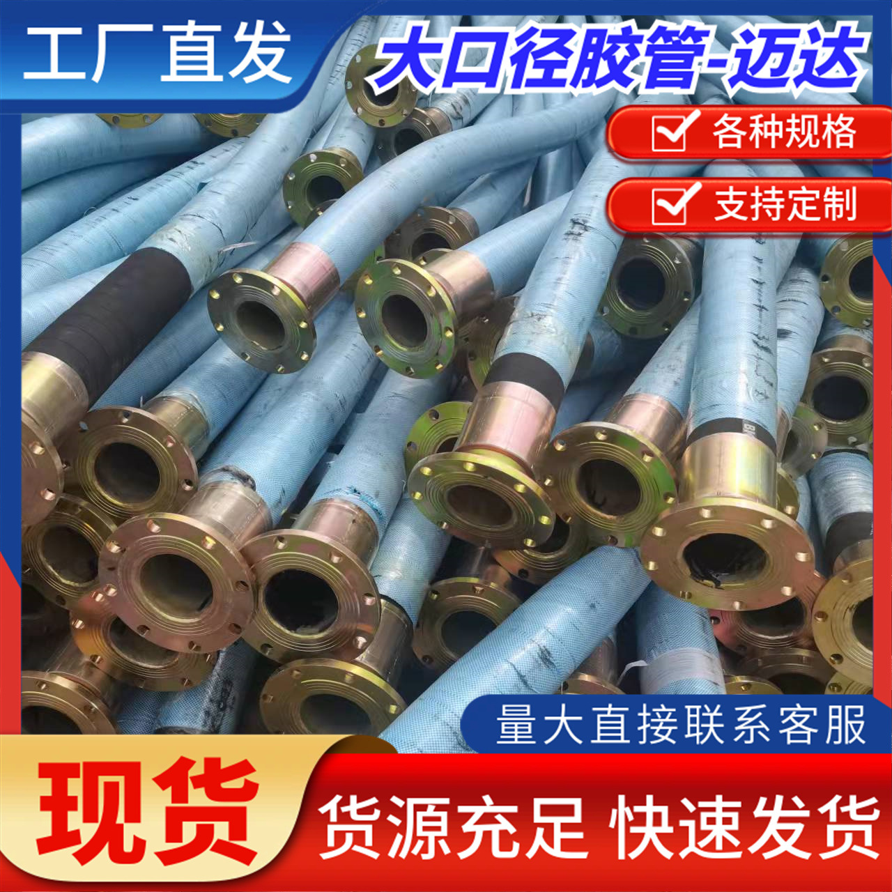 大口径フランジ浚渫ゴム管吸排泥布ゴム管建設機械吸送管鋼線ゴム管