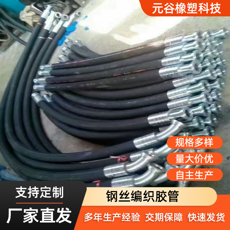 高圧ホースワイヤー編組ホース建設機械用油圧オイルチューブ高温蒸気管黒色ゴムチューブ