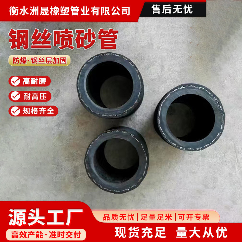 鋼線編組サンドブラストホース、高耐摩耗性、トンネル吹付用、鉱山吹付用軟管メーカー、高圧耐摩耗性強化