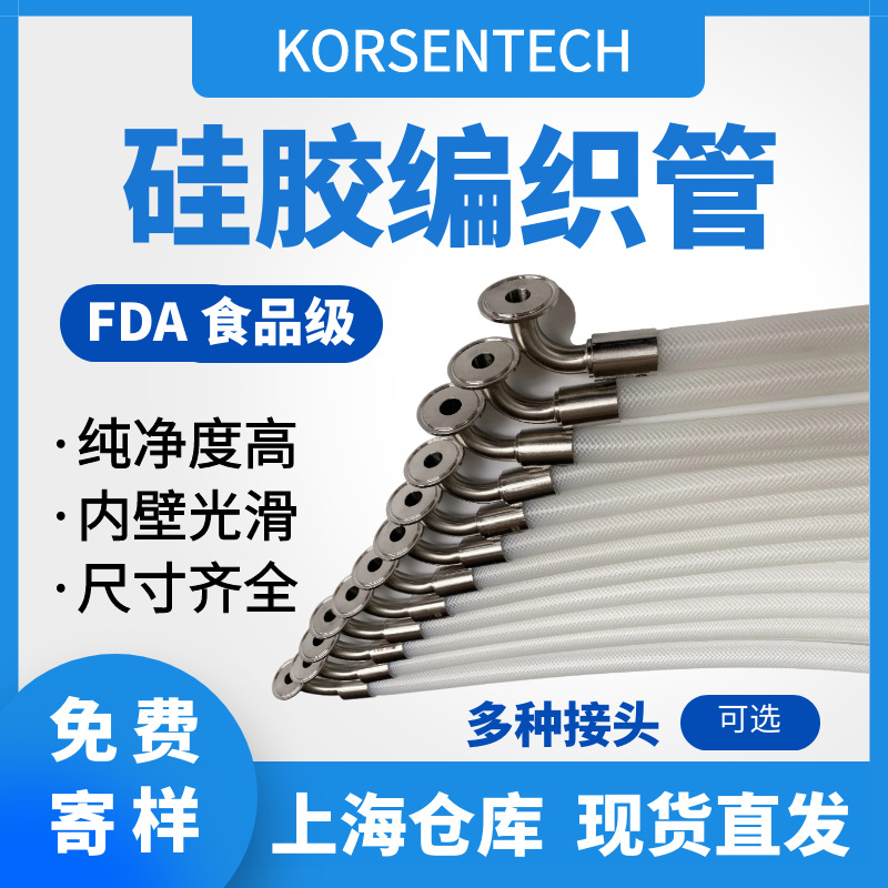 Korsentech fda食品級シリカゲル編組ホースプラチナ加硫シリカゲル編組ホース