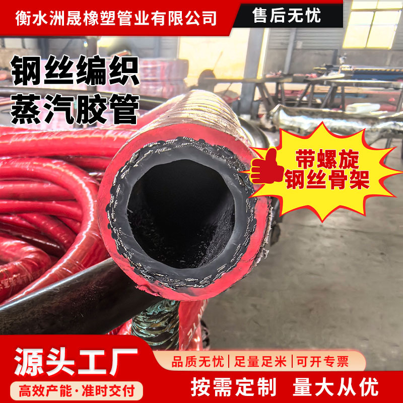 鋼線編組蒸気ホース スパイラル鋼線 耐負圧性 赤色 高温耐性 酸およびアルカリ耐性 高圧ホース