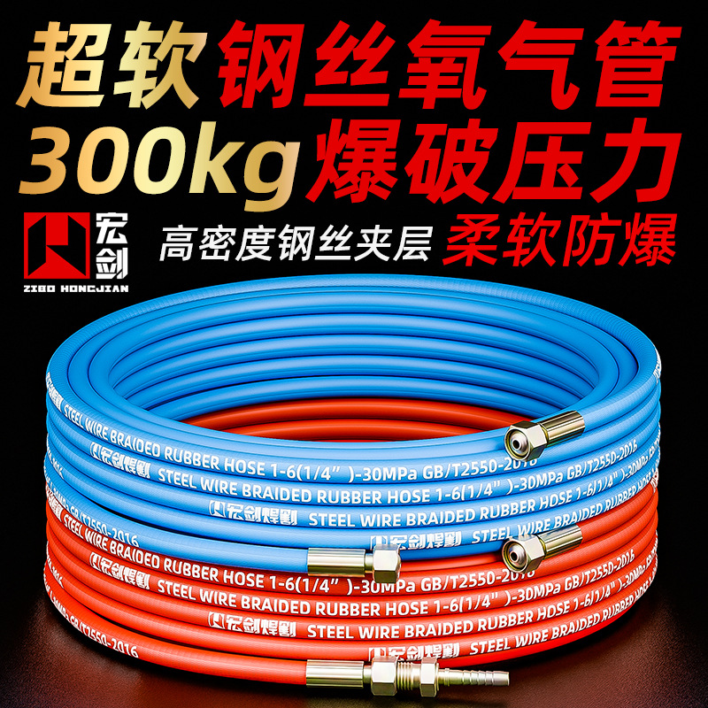 鋼線酸素チューブ、アセチレン二色チューブ、工業用プロパンゴムホース、切断ガン付き高圧酸素、ガス切断チューブ