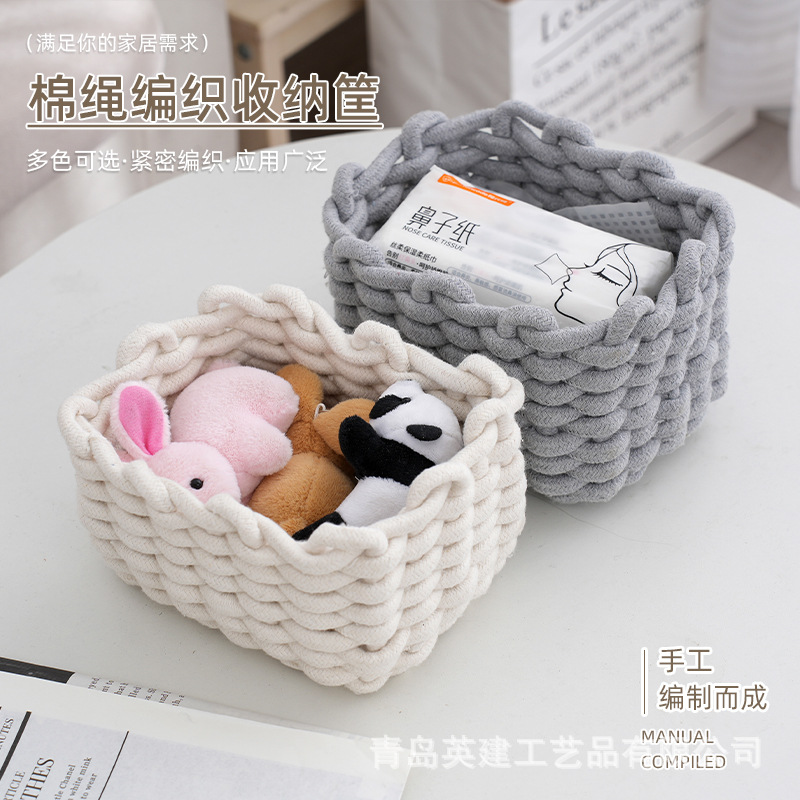 編みひも収納バスケット綿ひも収納バスケット綿ひもデスクトップ収納バスケット雑品編みピクニックバスケット収納卸