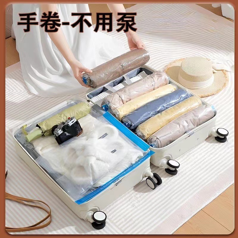 クロスボーダー圧縮袋排気フリー手巻き真空圧縮袋旅行携帯服化粧品圧縮収納袋