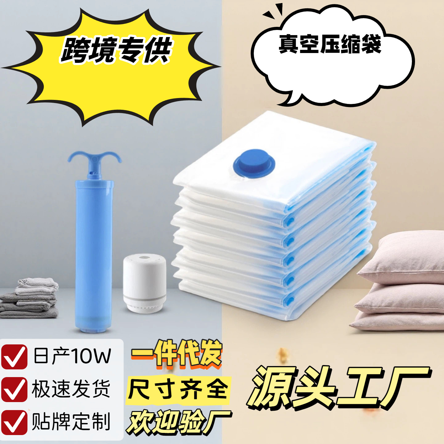 アマゾンクロスボーダー圧縮袋真空圧縮収納袋厚手衣類布団専用梱包旅行出張