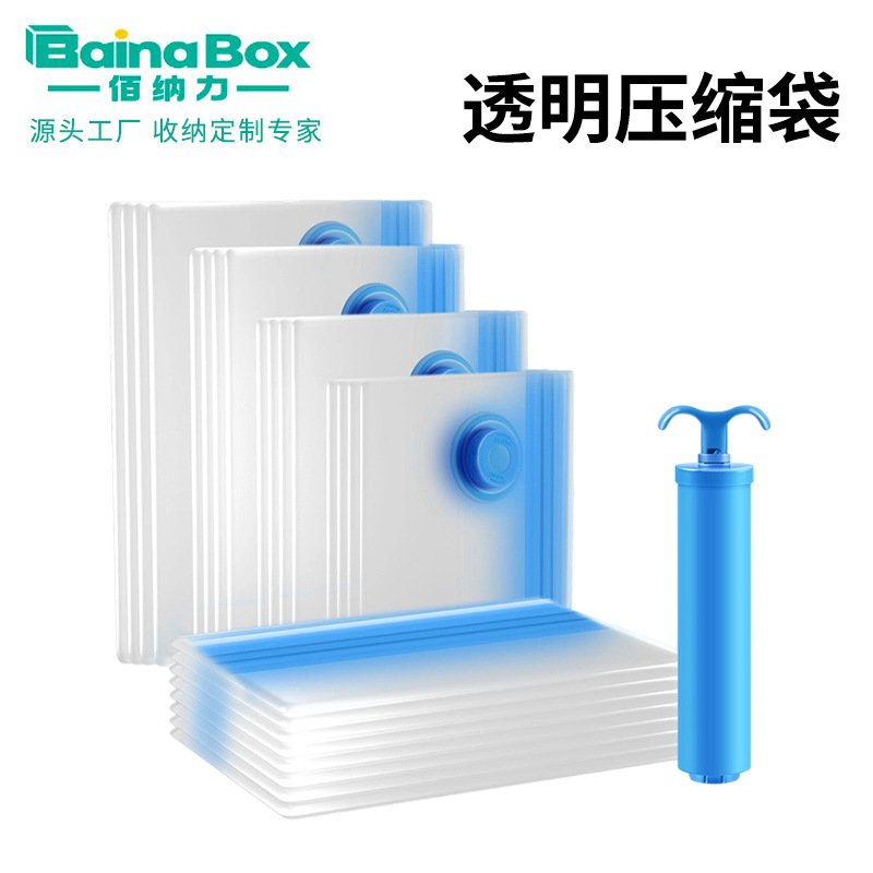 クロスボーダー透明真空圧縮袋キルト衣類キルト収納袋移動旅行ブルー真空ジッパーバッグ