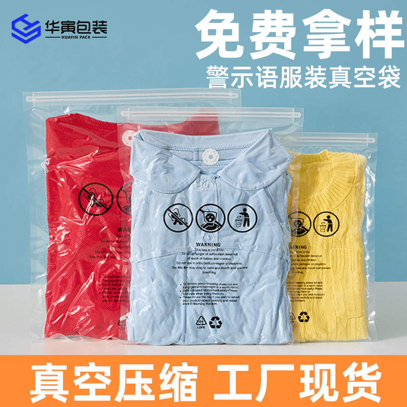 クロスボーダー真空ジッパーバッグ食品包装袋透明自己密封袋真空圧縮袋警告語服装袋
