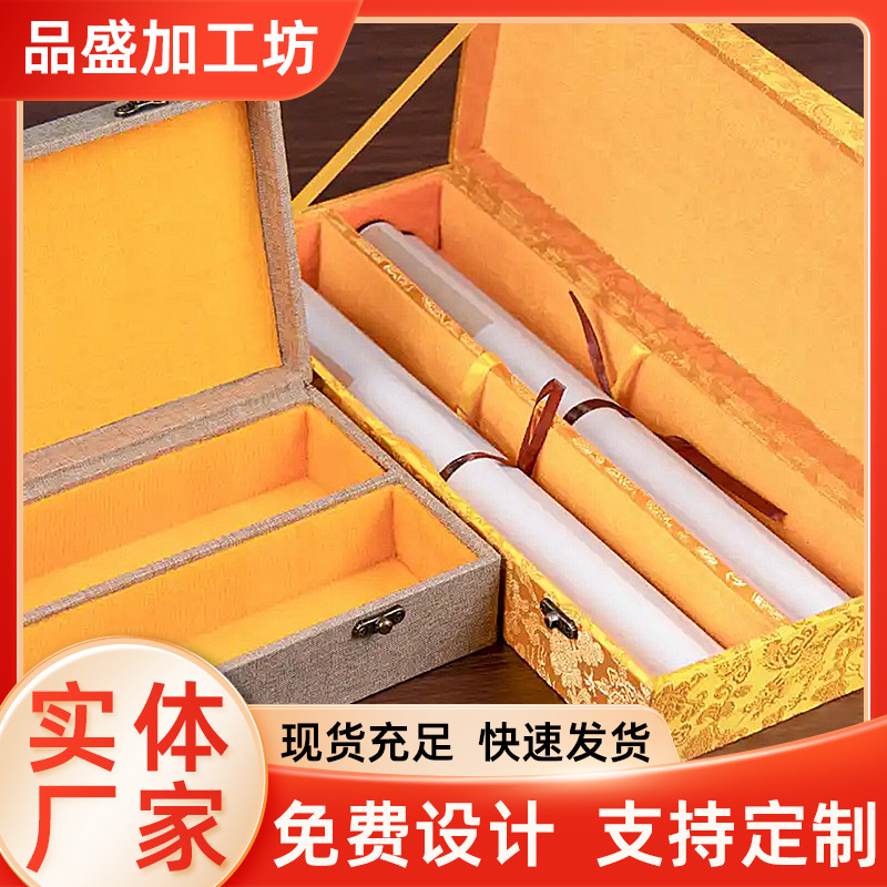 四条屏対聯、十条屏対聯、書道作品用包装箱、古風な錦布の内張り、空箱、カスタム木箱