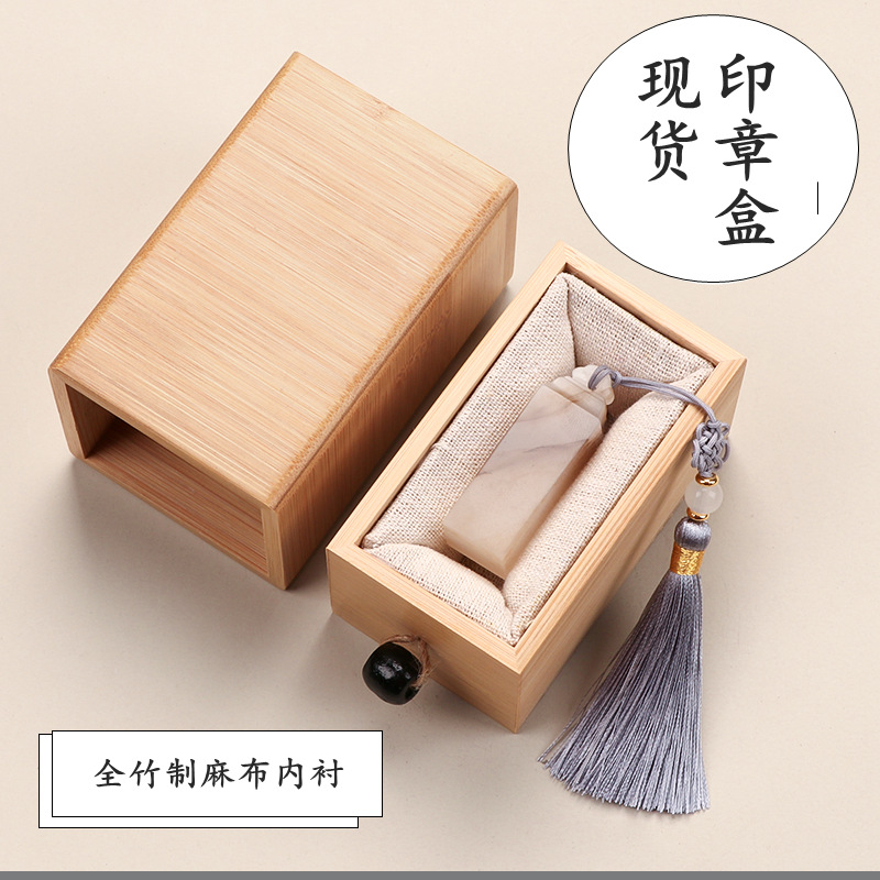 シンプルな引き出し式木箱オフィス竹印鑑箱インクパッド収納木箱文湾クルミ無垢材収納ボックス