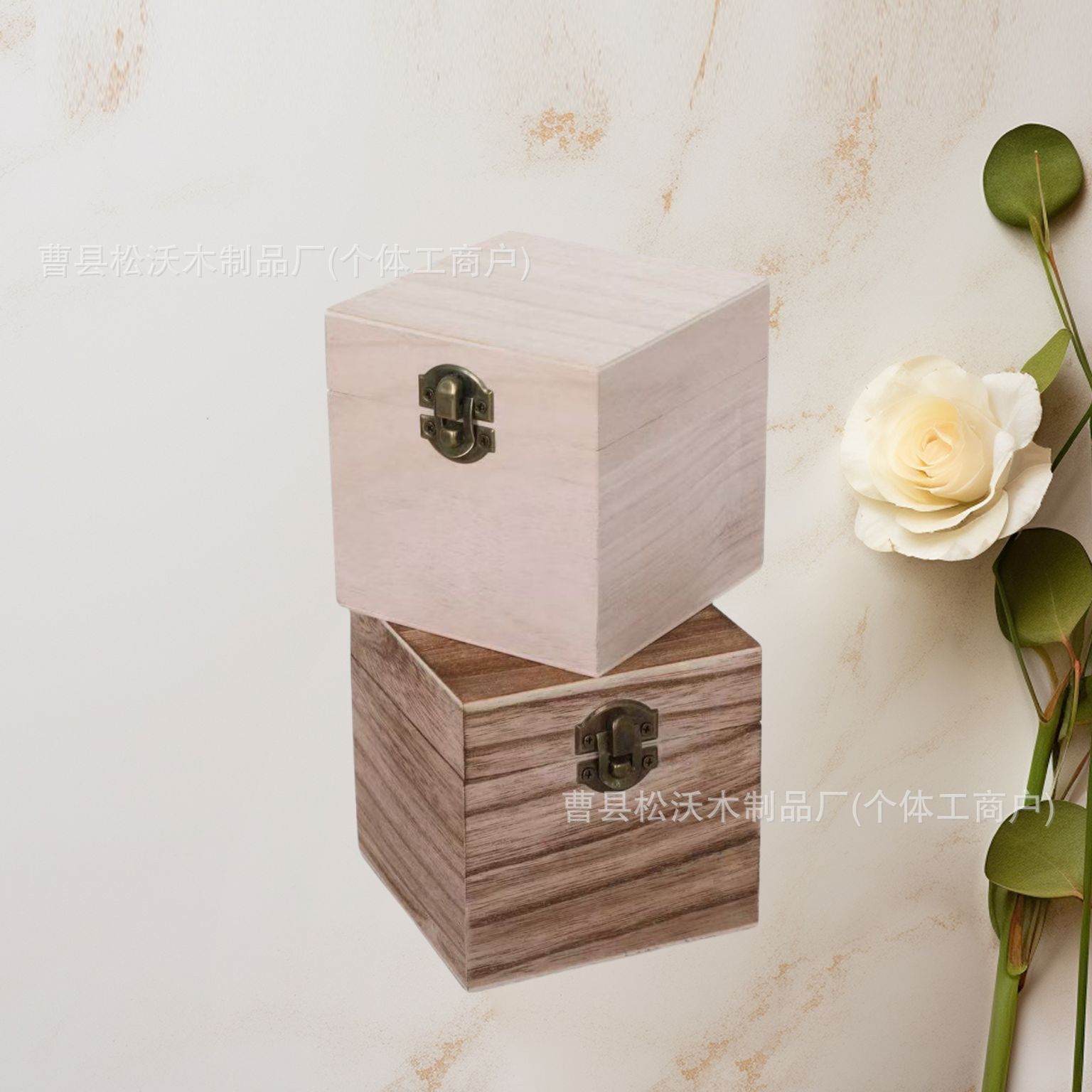 木製フリップトップ収納ボックス正方形ギフト包装箱桐箱無垢材ロック付きレトロ雑貨収納ボックス