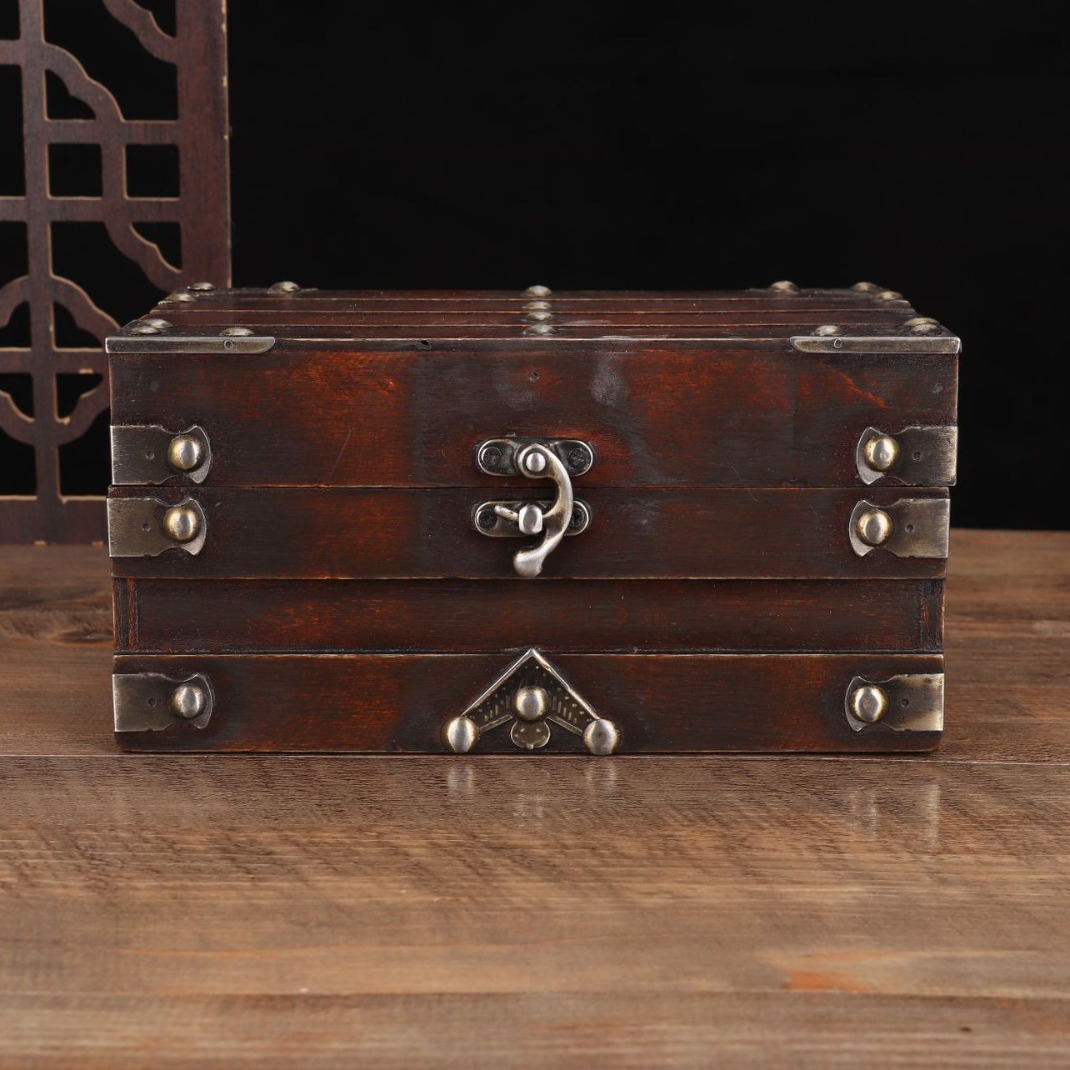 レトロな木の収納箱は古百宝箱の貯蔵物の小さい木箱に似せて木箱の密室をロックして宝の道具箱を隠します。