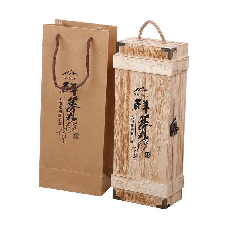 メーカー卸売り木製包装箱新鮮参木箱贈答品参箱人参酒木箱は押すことができる