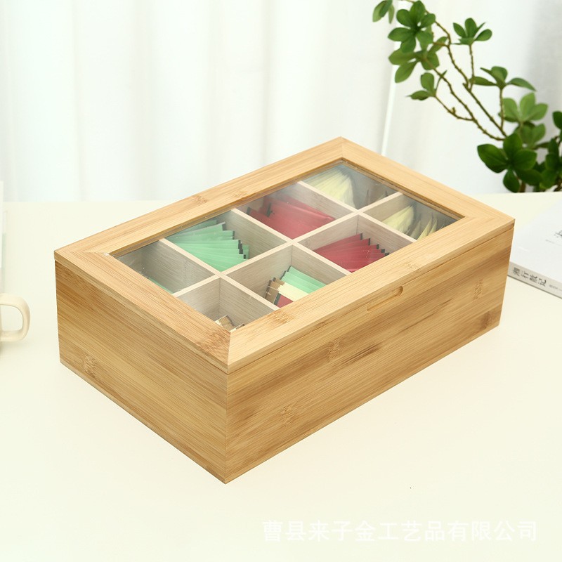茶葉分格包装木箱家庭用透明ガラス茶包収納箱茶葉木造包装箱木造礼箱