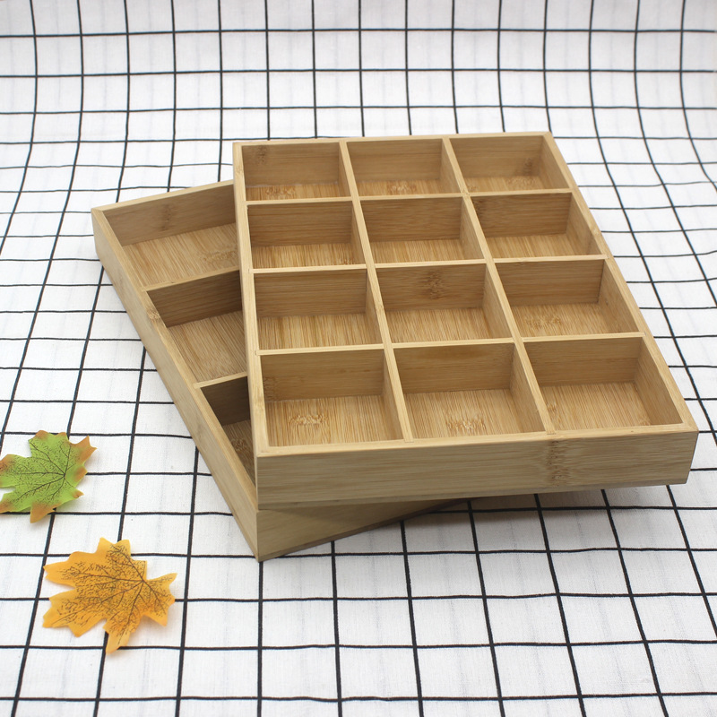 竹のトレーの鍋の焼肉の分類の皿の長方形の多格のトレーの乾燥している果物の間食の格の木の箱のメーカーの卸売り