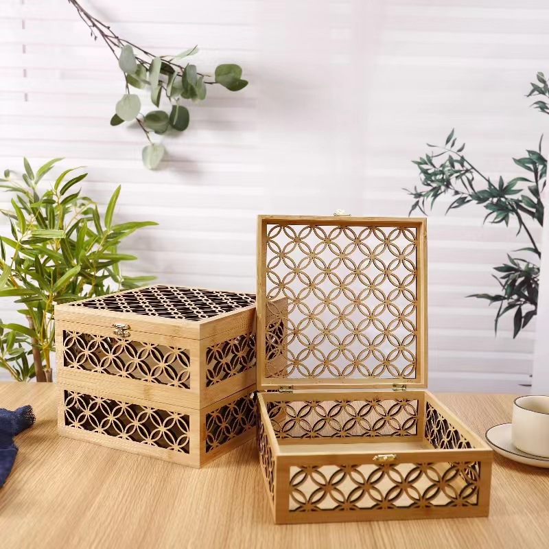 木造の楠竹の贈り物の箱は透かし彫りの芸の木の箱の茶道具のお茶の収納の箱の磁器の包装の箱の木製の贈り物の箱を彫ります