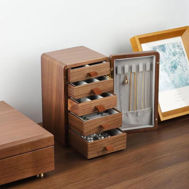 実木冷蔵庫アクセサリーケース収納ケース引き出し式高級イヤリングネックレス腕時計収納ケースアクセサリーケース