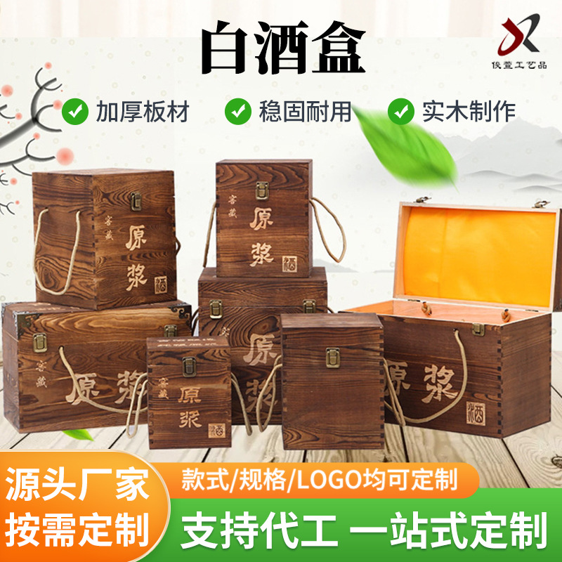 現物酒壇木箱包装箱炭焼き色木造茅台酒空木箱双瓶手提げ式白酒木箱