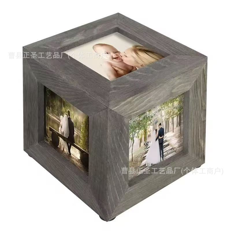 新しい無垢材フォトフレーム収納ボックス正方形木製フォトディスプレイボックスキューブ木製フォトフレームボックステーブル