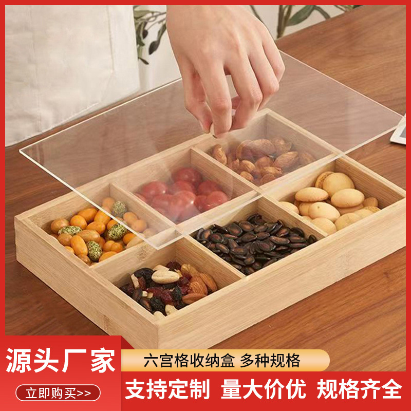 木製 MDF 6 グリッド収納ボックスドライフルーツメロンシードキャンディボックスアートジュエリー新築祝い結婚式分類ボックスストレートクロスボーダー