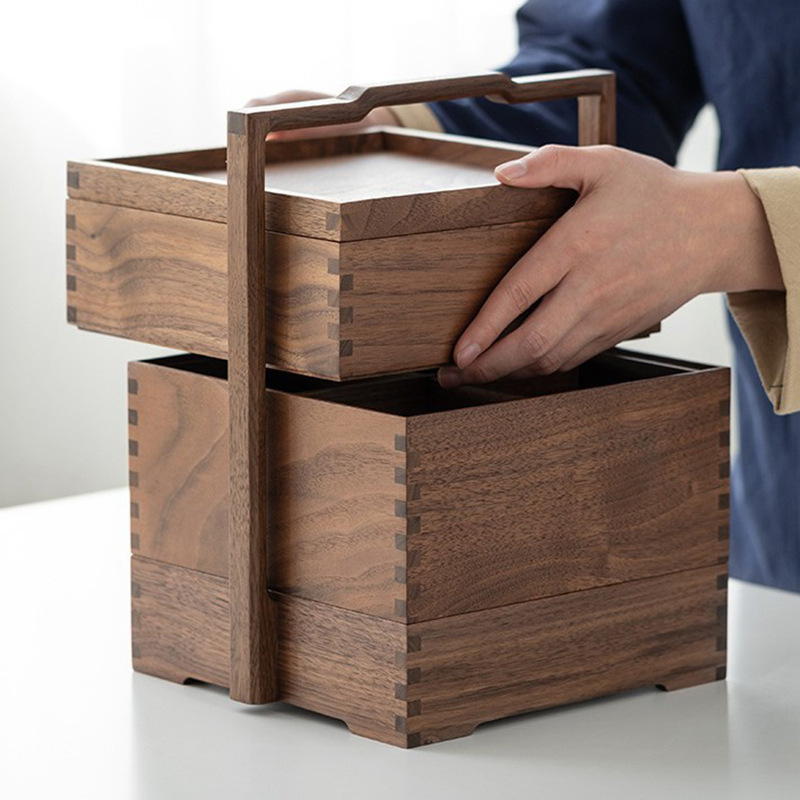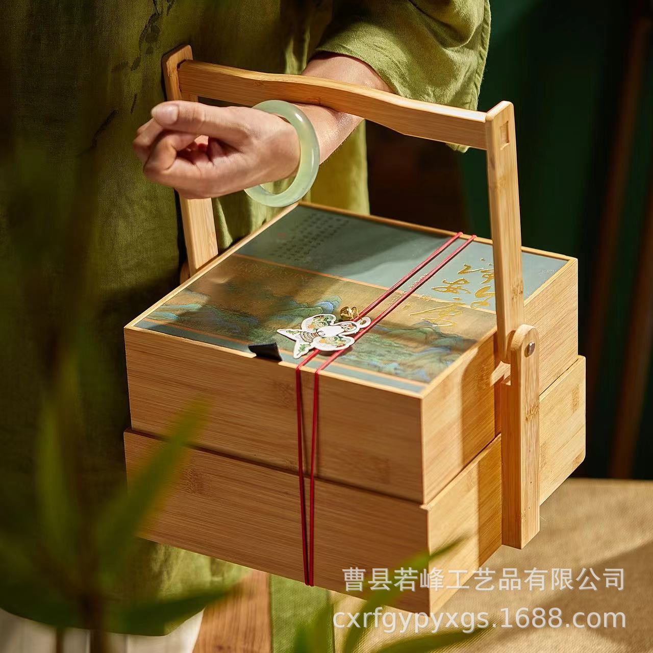 新しい中国風の木製多層ボックスレトロ茶ケーキ包装ポータブル木製端午節ギフトボックスランチボックス