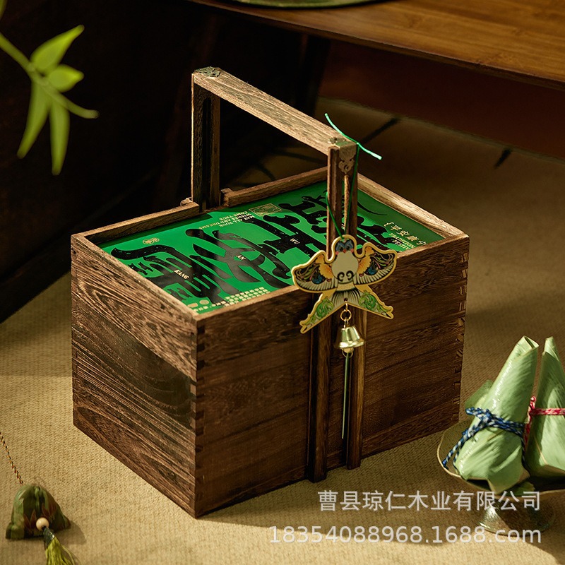 レトロちまき包装箱端午の節句木製手提げギフトボックス大容量お土産アヒルの卵収納ケース