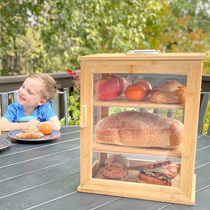 家庭用竹貯蓄ボックススナックフルーツポータブル収納ボックス竹パンボックス三層竹ペストリーシェルフ
