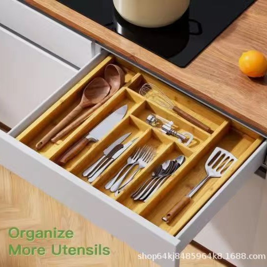 無垢材の包丁とフォークの収納ボックス、蓋なしの竹製デスクトップ、マルチグリッド整理木箱、引き出し、雑貨収納ボックス
