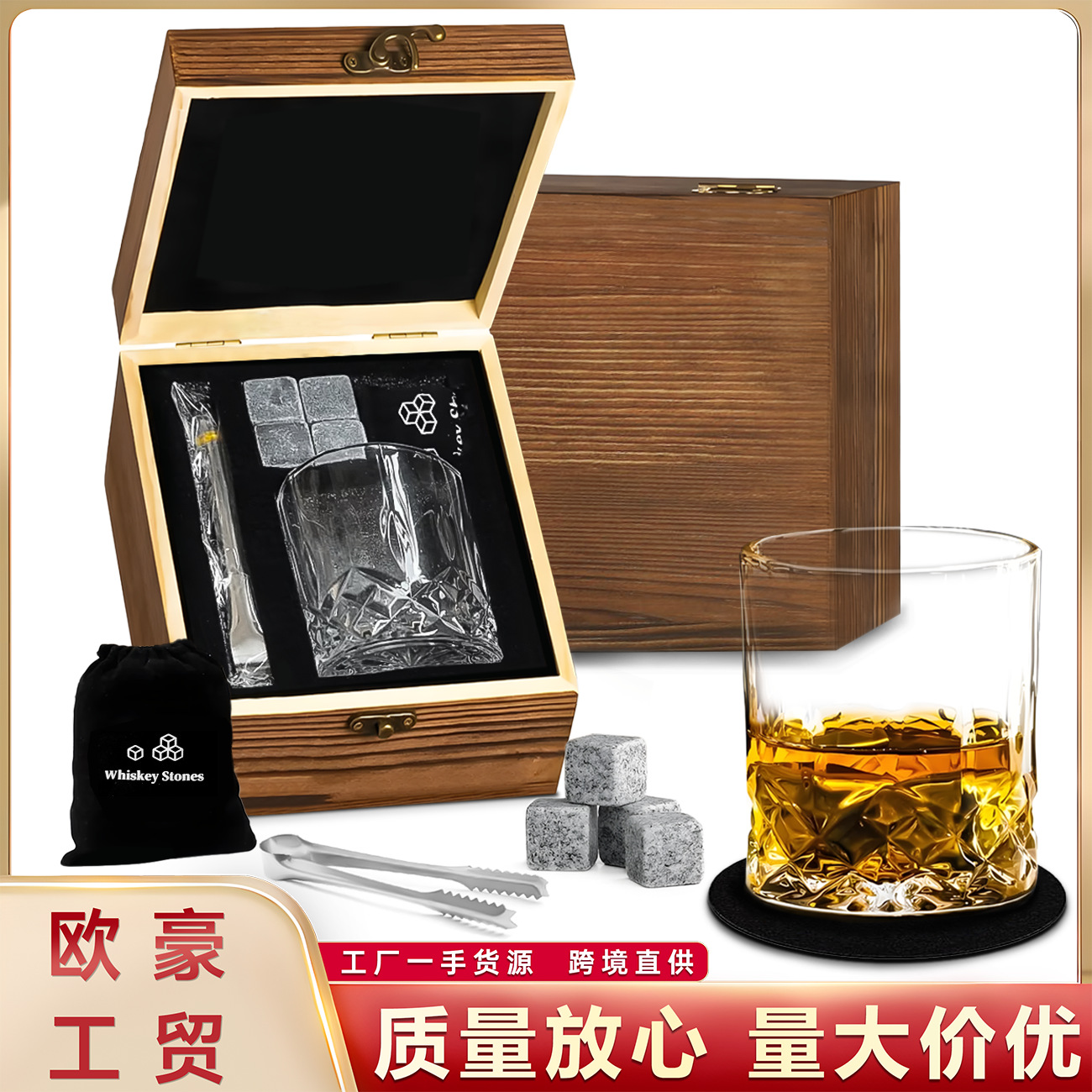 ウイスキー氷酒石木箱セットコップグラスギフトボックスウイスキーカップセット木箱卸売り