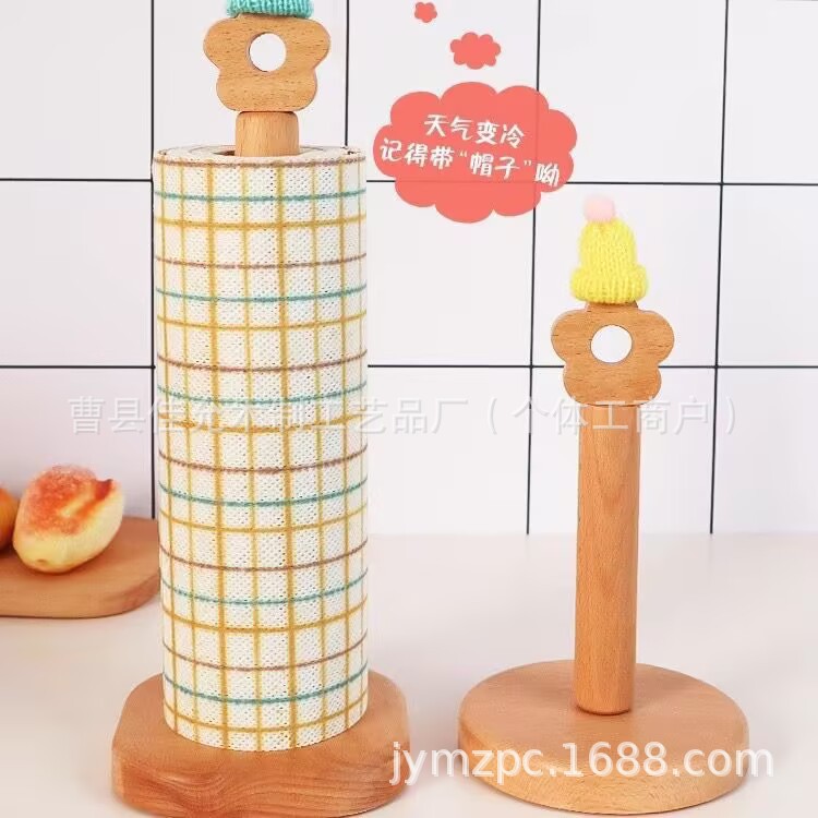 無垢材収納ラックキッチンペーパータオルホルダーラップフィルム保存袋レイジーラグロール紙垂直カウンタートップ収納ラック