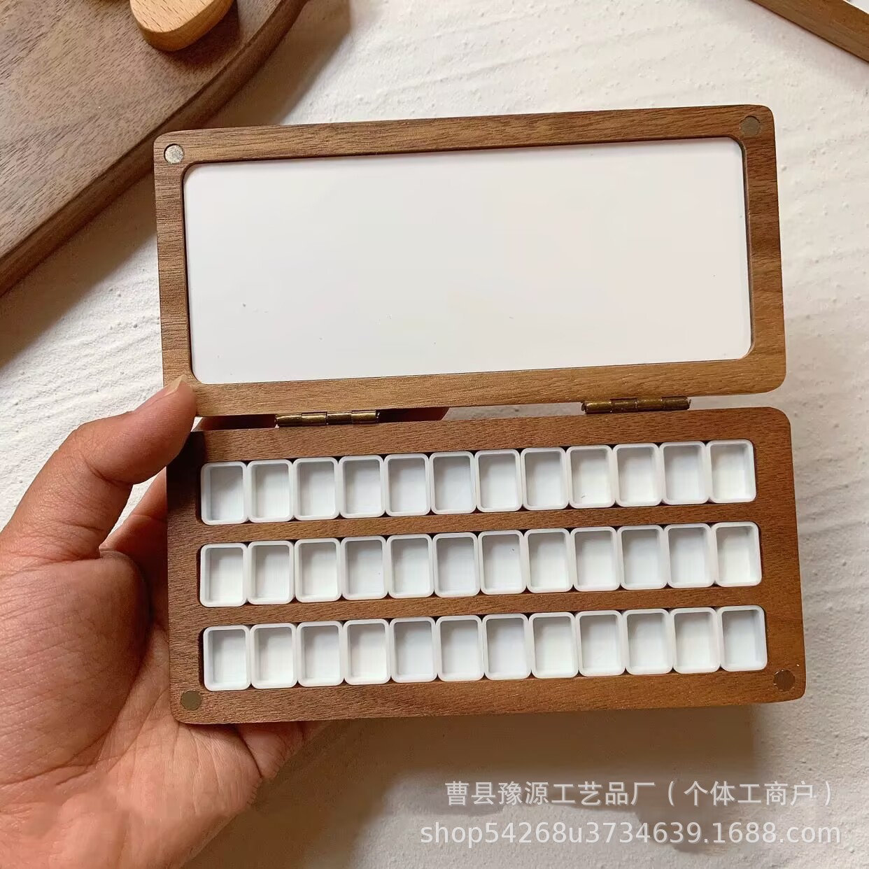 木製水彩絵の具ボックス 24 色 2 ミリリットルポータブル保湿固体水彩ボックス黒クルミ増粘非変形