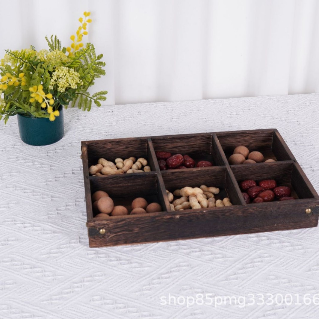 木製ストーブで紅茶やスナックを調理できる木箱、マルチグリッドデザートとドライフルーツの収納ボックス、シンプルな家庭用キャンディスナック収納ボックス