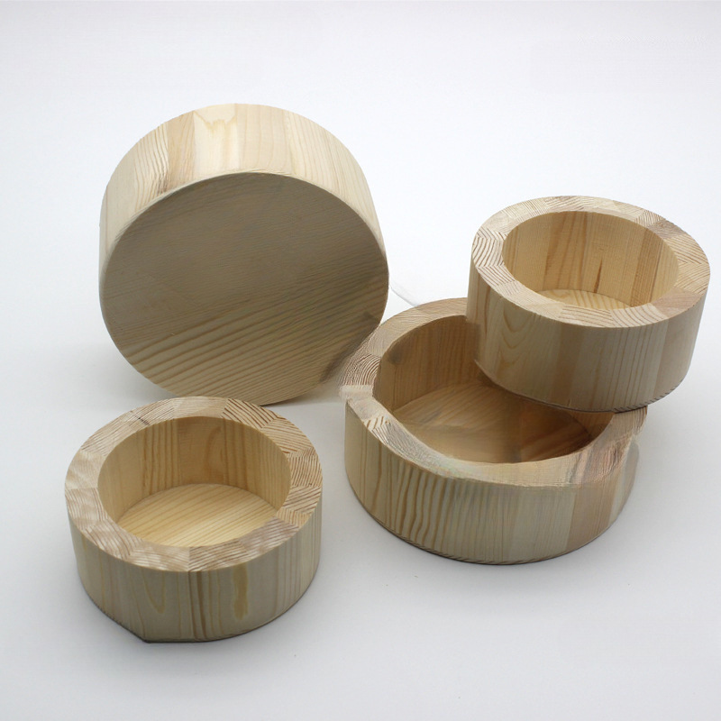 無垢材の蓋なし丸い木箱デスクトップクリエイティブラウンドナッツとメロンの種子収納ボックス木製ラウンド木製トレイ