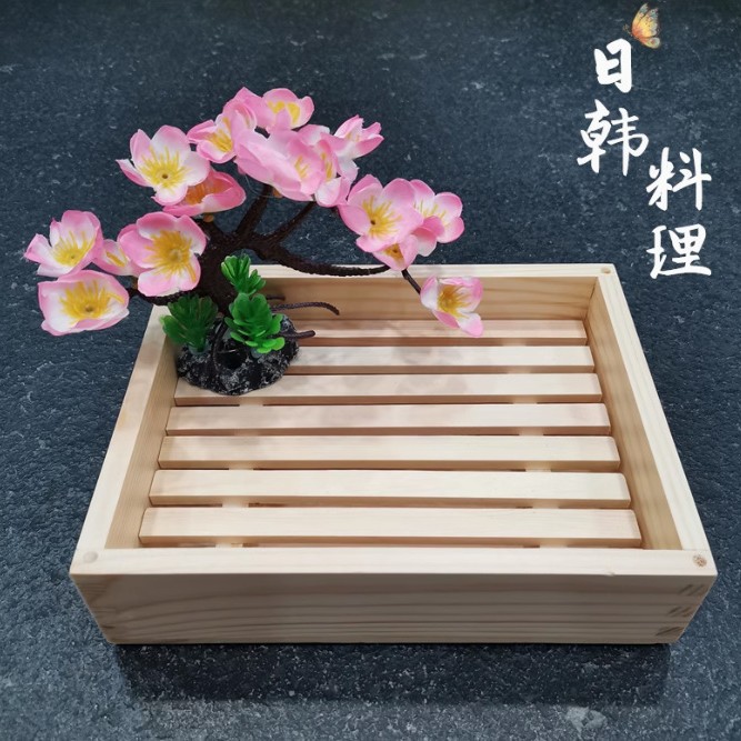 定制日本料理长方形木质和牛肉盒子寿喜锅蔬菜拼盘海鲜外卖松木盒