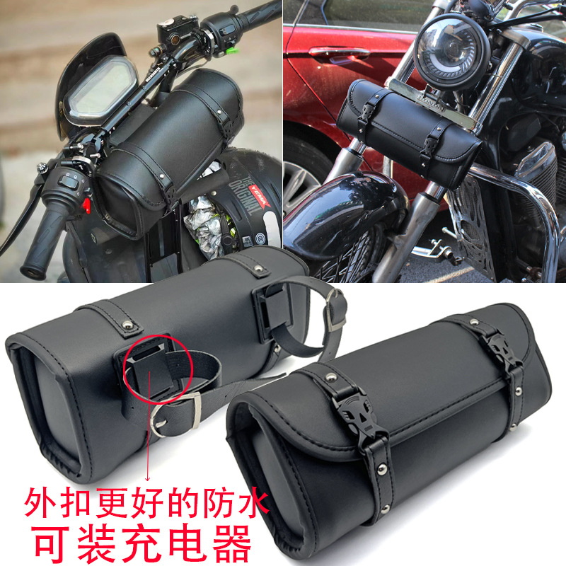 オートバイのクルーズのレトロな車の子牛の電動の改造の部品の通用の皮革の防水の車の頭の包みは包みの工具を掛けます。