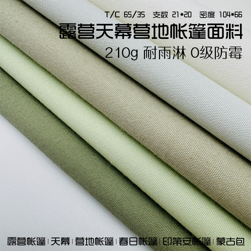 210gポリエステル綿染色防水防かび屋外テントテント布平織りキャンバス屋根テント布綿布カスタム