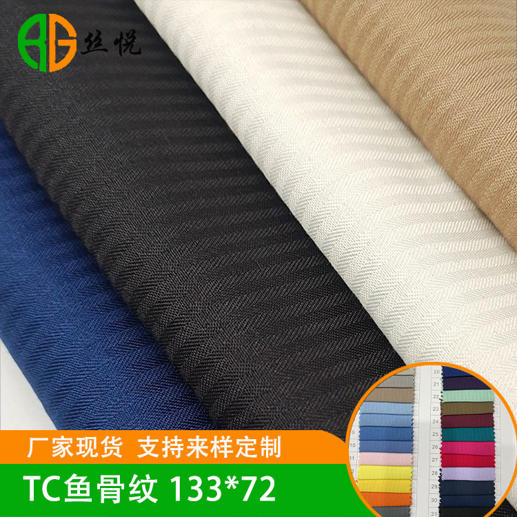スポット卸売り133*72ポリエステル綿魚骨紋色布TC魚骨紋生地シャツポケット布生地