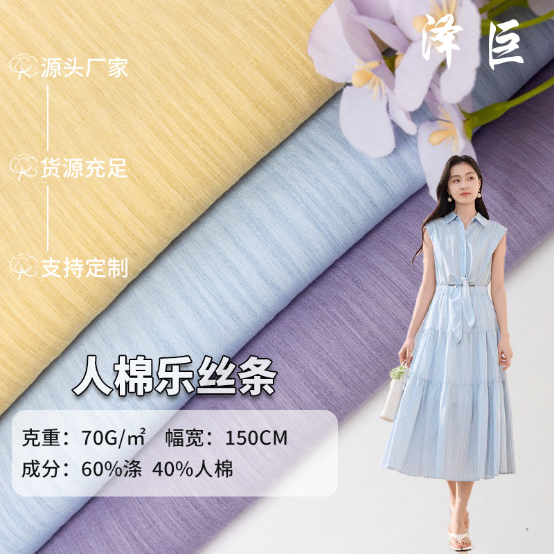 ポリエステル綿楽糸条無地ストライプ生地春夏女装ファッション軽薄通気ワンピースカジュアル生地