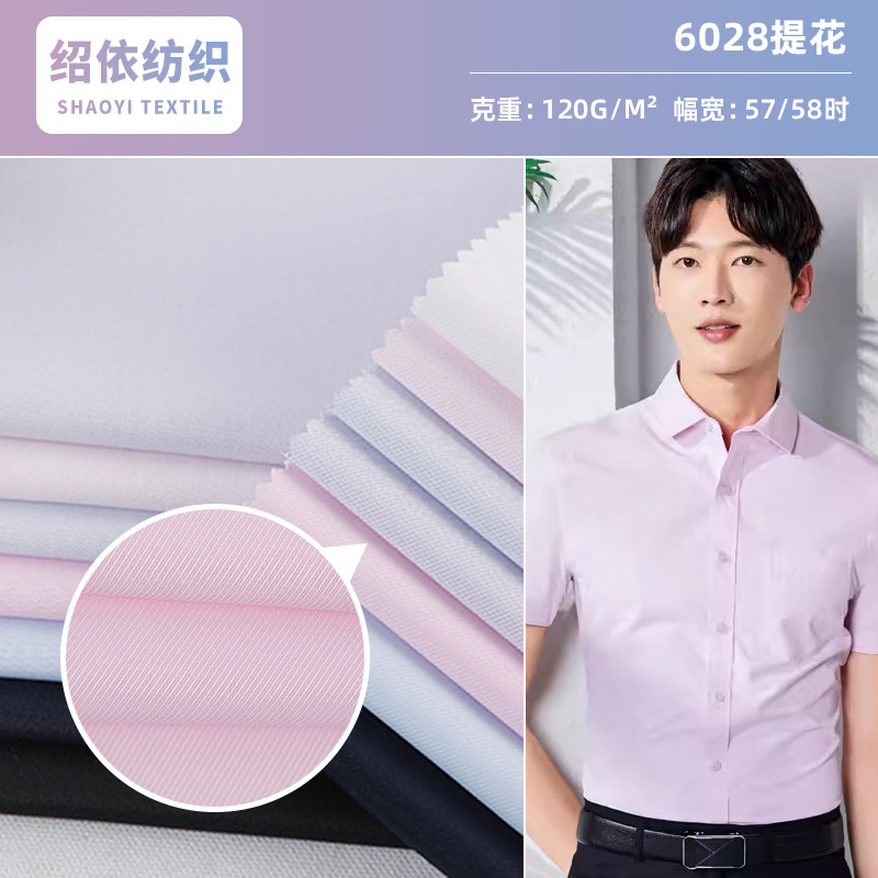 クラシックな細斜織ジャカードポリエステル綿混紡シャツ生地、学生服、オフィスウェア、ビジネスウェア、シャツ生地