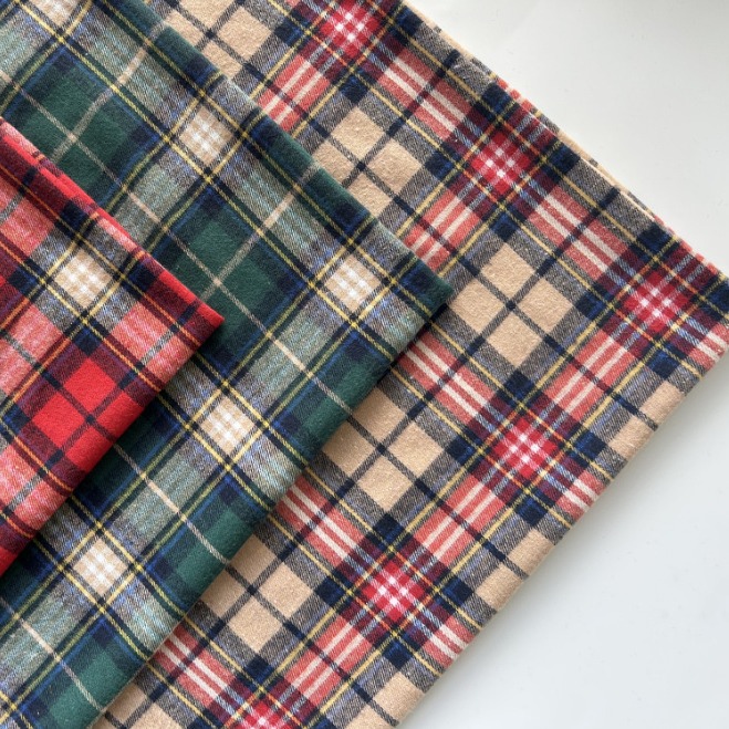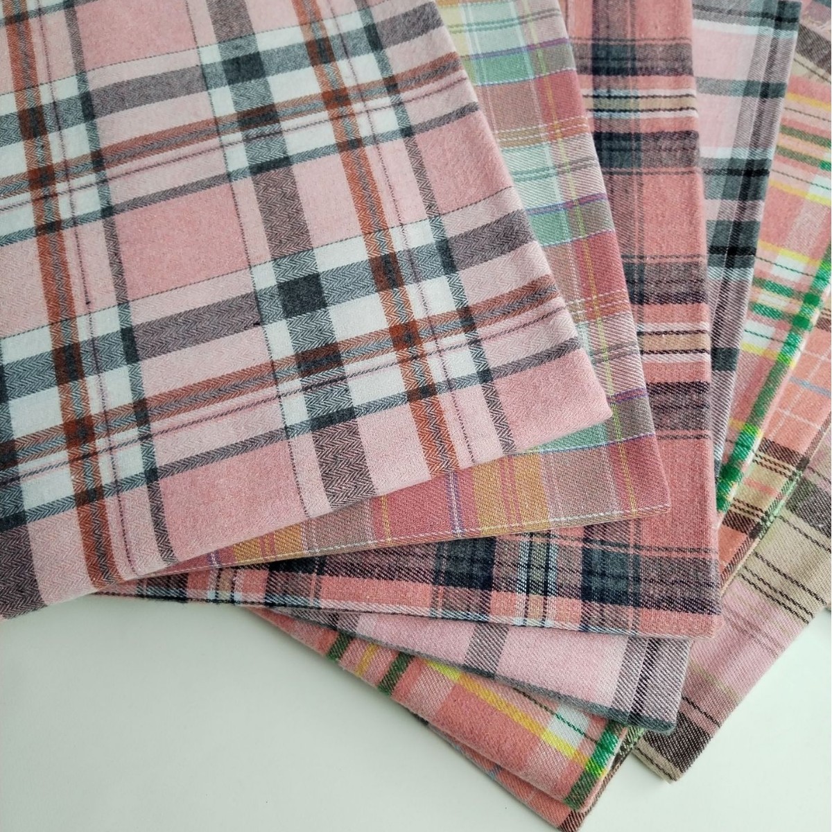 工場販売男女ワイシャツ生地ポリエステル綿フランネル生地子供服シャツチェック生地